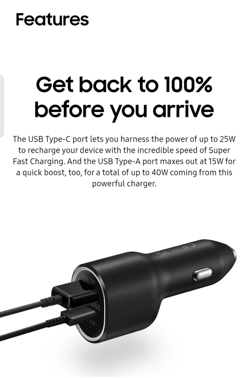 SAMSUNG CAR SUPER FAST CHARGER